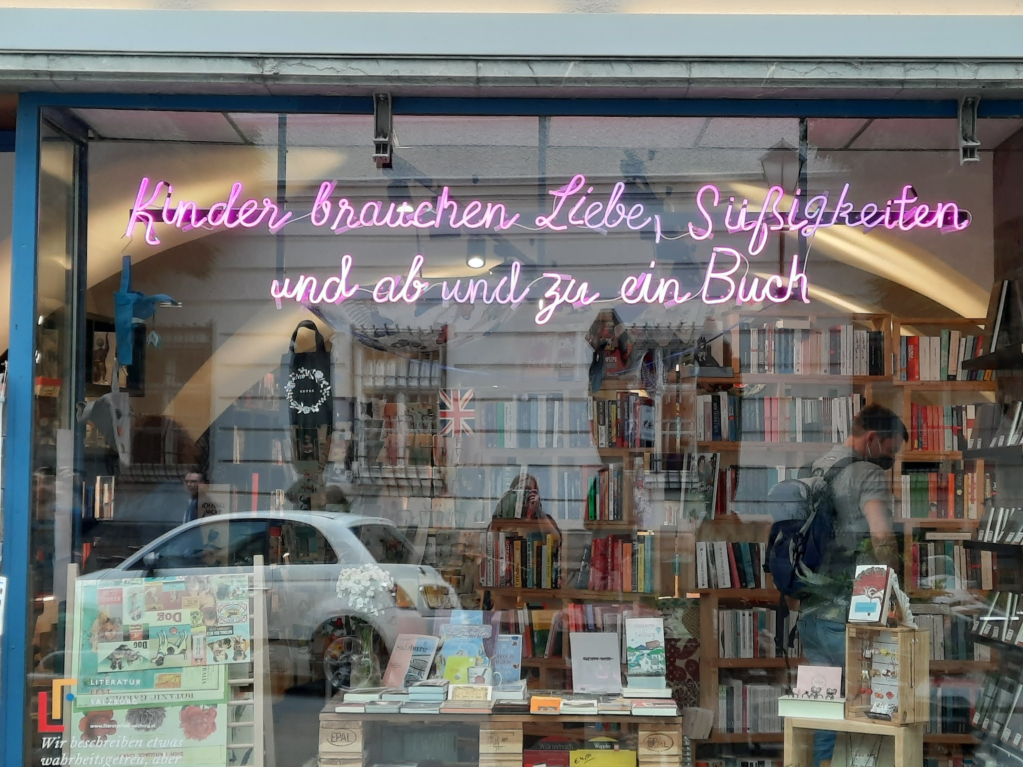 Gesehen an einem Buchladen in Salzburg. Ich musste es natürlich direkt fotografieren. Weil es auch passt. |
